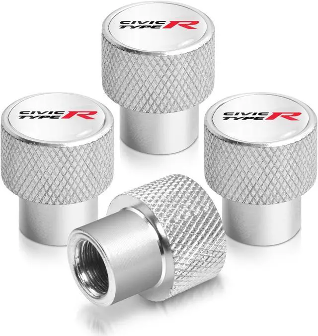 Honda Civic Type-R in White on Shining Silver Aluminum Tire Valve Stem Caps