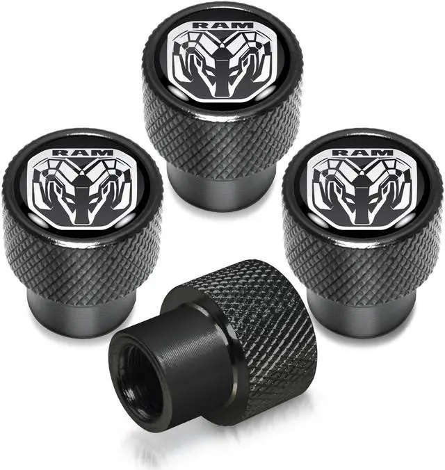 RAM 2019 Logo in Black on Black Aluminum Tire Valve Stem Caps