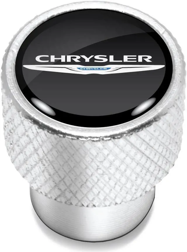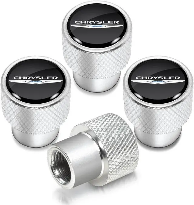 Chrysler Logo in Black on Shining Silver Aluminum Tire Valve Stem Caps