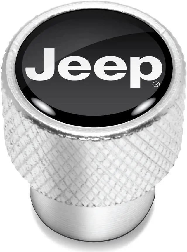 Jeep in Black on Shining Silver Aluminum Tire Valve Stem Caps