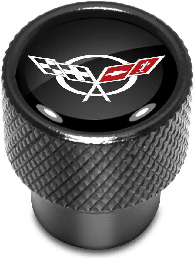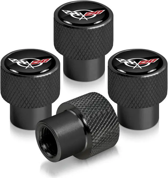 Chevrolet Corvette C5 Logo in Black on Black Aluminum Tire Valve Stem Caps