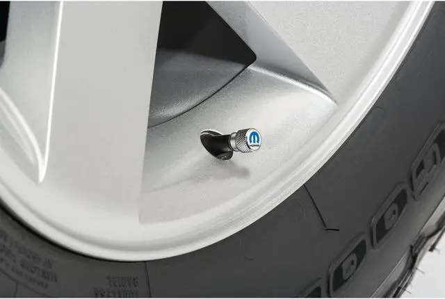 Mopar in White on Shining Silver Aluminum Tire Valve Stem Caps