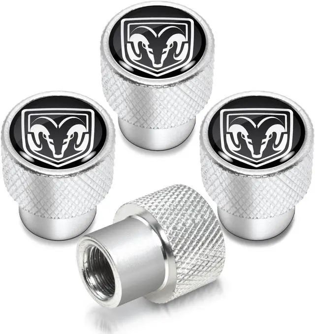 RAM in Black on Shining Silver Aluminum Tire Valve Stem Caps