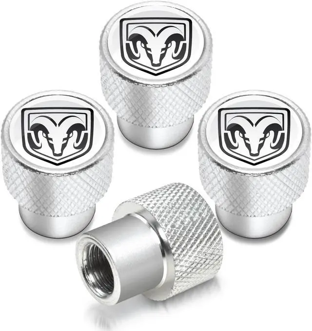 RAM in White on Shining Silver Aluminum Tire Valve Stem Caps