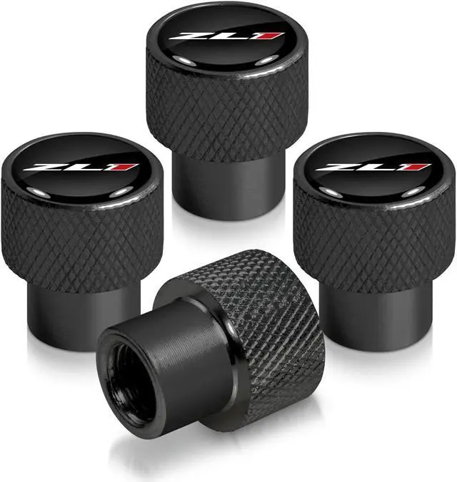Chevrolet Camaro ZL1 Logo in Black on Black Aluminum Tire Valve Stem Caps