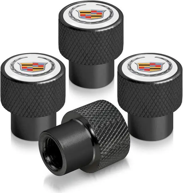 Cadillac Logo in White on Black Aluminum Tire Valve Stem Caps