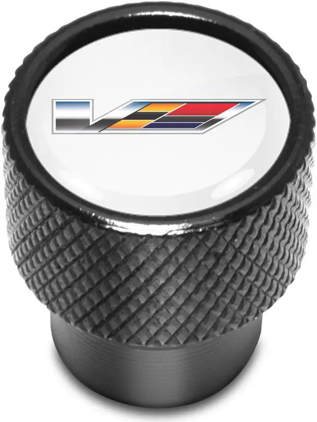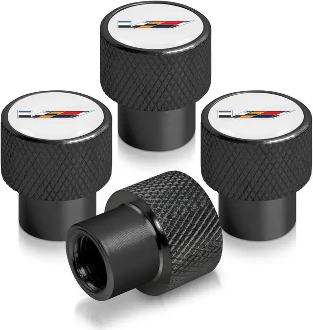 Cadillac V Logo in White on Black Aluminum Tire Valve Stem Caps