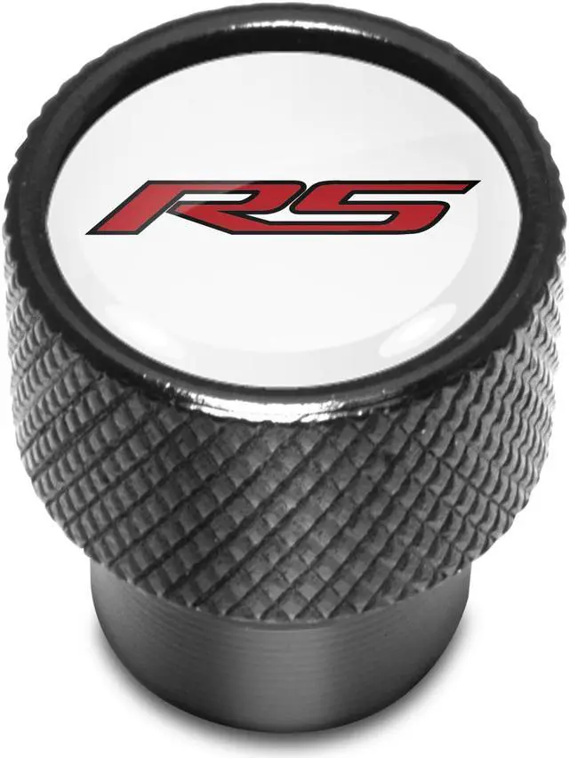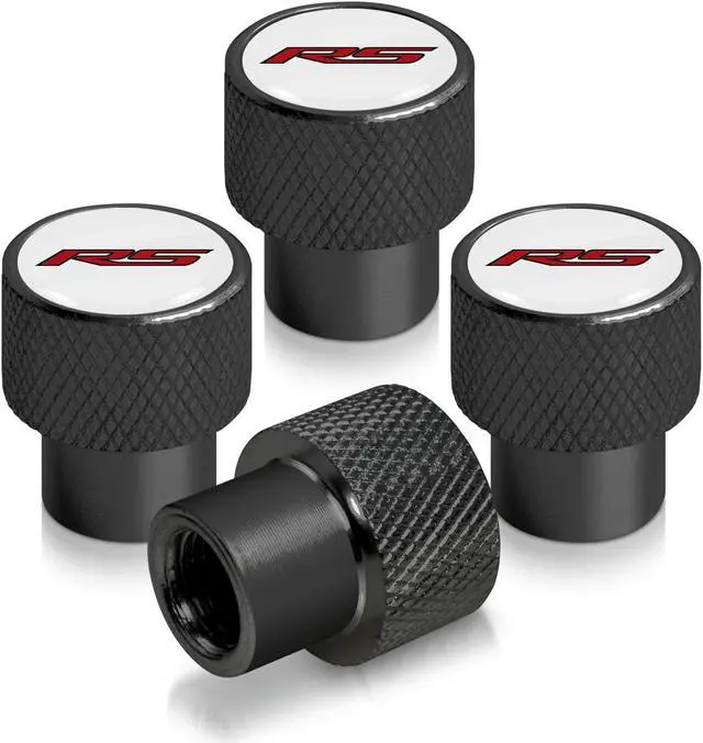 Chevrolet Camaro RS Logo in White on Black Aluminum Tire Valve Stem Caps