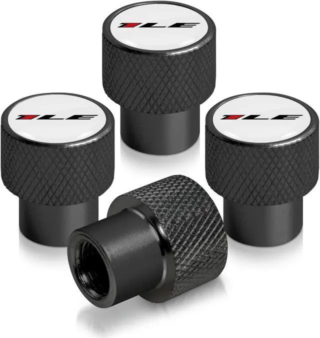 Chevrolet Camaro 1LE Logo in White on Black Aluminum Tire Valve Stem Caps