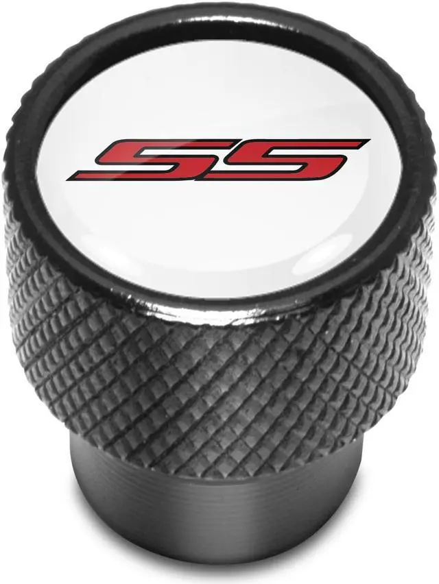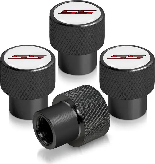 Chevrolet Camaro SS Logo in White on Black Aluminum Tire Valve Stem Caps