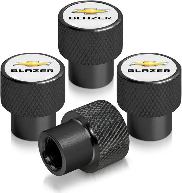 Chevrolet Blazer Dual Logo in White on Black Aluminum Tire Valve Stem Caps