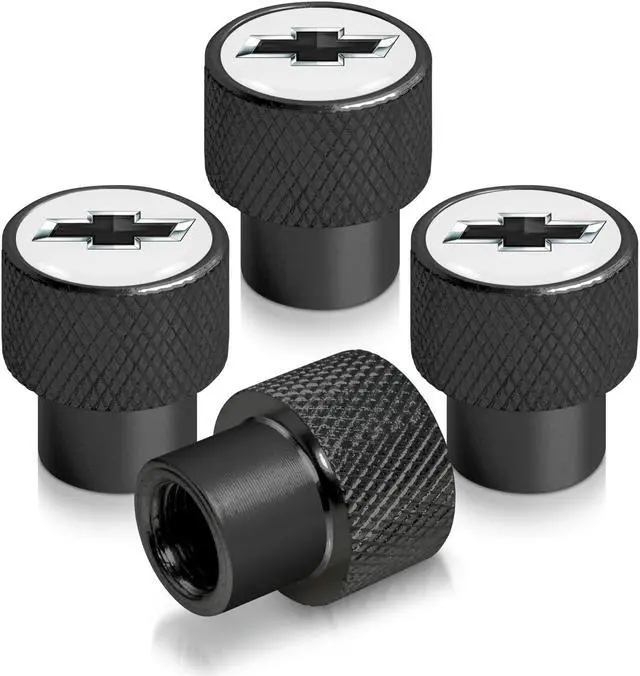 Chevrolet Black Logo in White on Black Aluminum Tire Valve Stem Caps