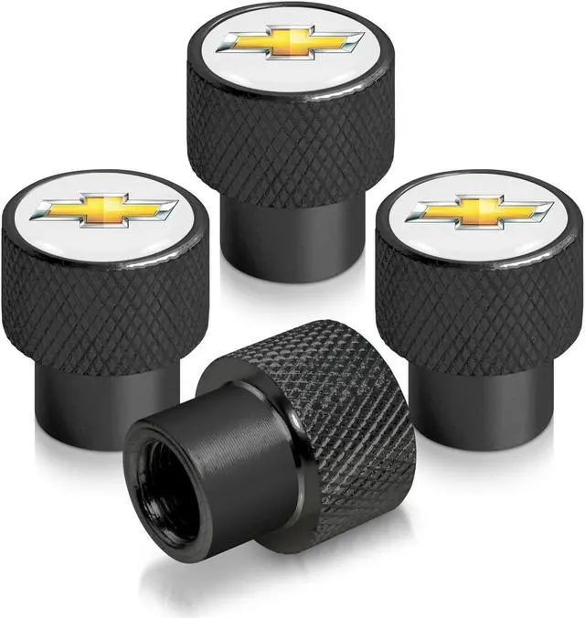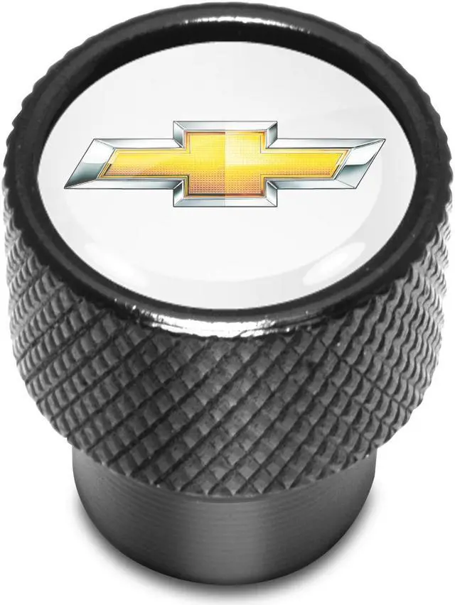 Chevrolet Golden Logo in White on Black Aluminum Tire Valve Stem Caps