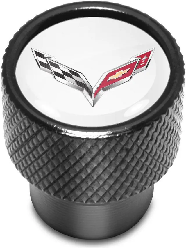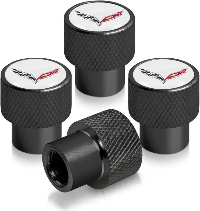 Chevrolet Corvette C7 Logo in White on Black Aluminum Tire Valve Stem Caps