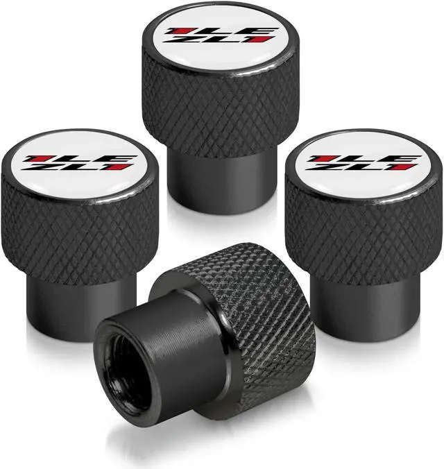 Chevrolet Camaro ZL1-1LE Logo in White on Black Aluminum Tire Valve Stem Caps