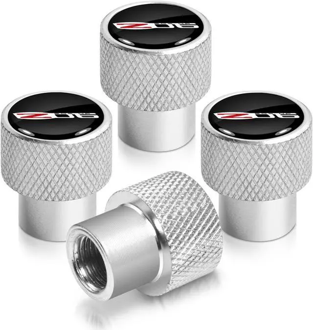 Chevrolet Corvette C6 Z06 Black on Shining Silver Aluminum Tire Valve Stem Caps