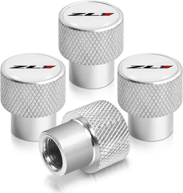 Chevrolet Camaro ZL1 Logo White on Shining Silver Aluminum Tire Valve Stem Caps