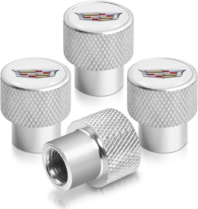 Cadillac Crest Logo in White on Shining Silver Aluminum Tire Valve Stem Caps