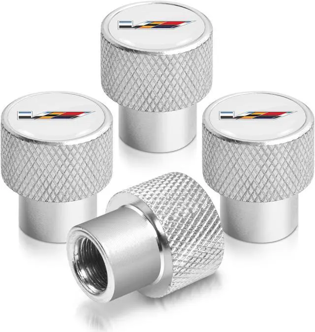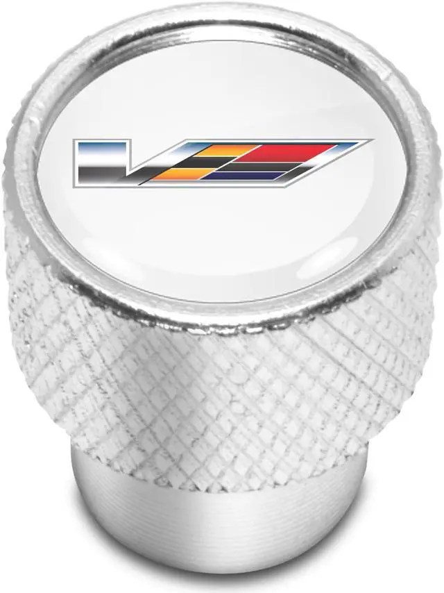 Cadillac V Logo in White on Shining Silver Aluminum Tire Valve Stem Caps