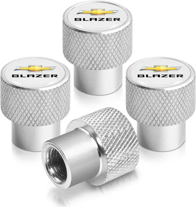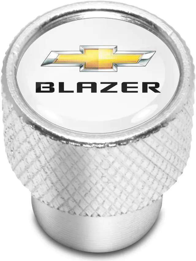 Chevrolet Blazer Logo in White on Shining Silver Aluminum Tire Valve Stem Caps