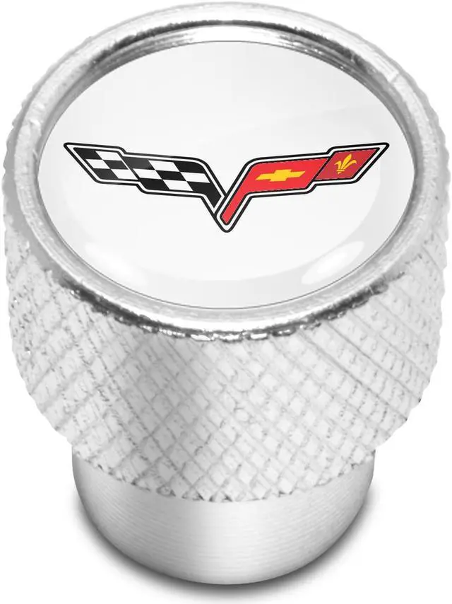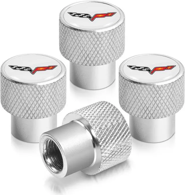 Chevrolet Corvette C6 Logo White on Shining Silver Aluminum Tire Valve Stem Caps