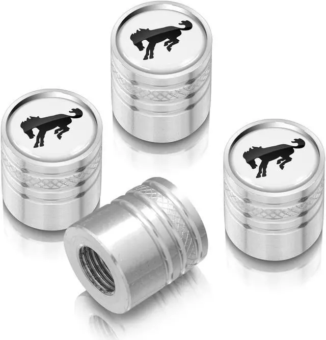 Ford Bronco White on Silver Aluminum Cylinder-Style Tire Valve Stem Caps