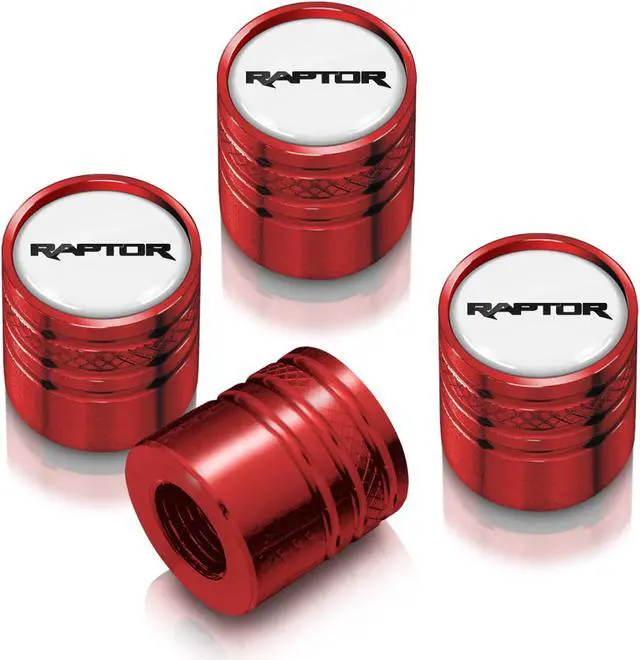Ford F-150 Raptor White on Red Aluminum Cylinder-Style Tire Valve Stem Caps