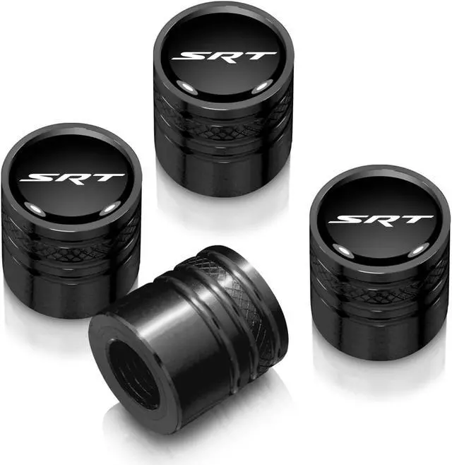Dodge Jeep SRT Logo Black on Black Aluminum Cylinder-Style Tire Valve Stem Caps