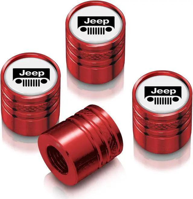 Jeep Grill in White on Red Aluminum Cylinder-Style Tire Valve Stem Caps