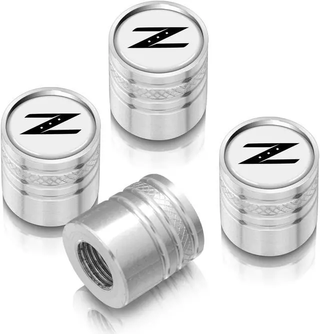 Nissan 350Z Z Logo White on Silver Aluminum Cylinder-Style Tire Valve Stem Caps