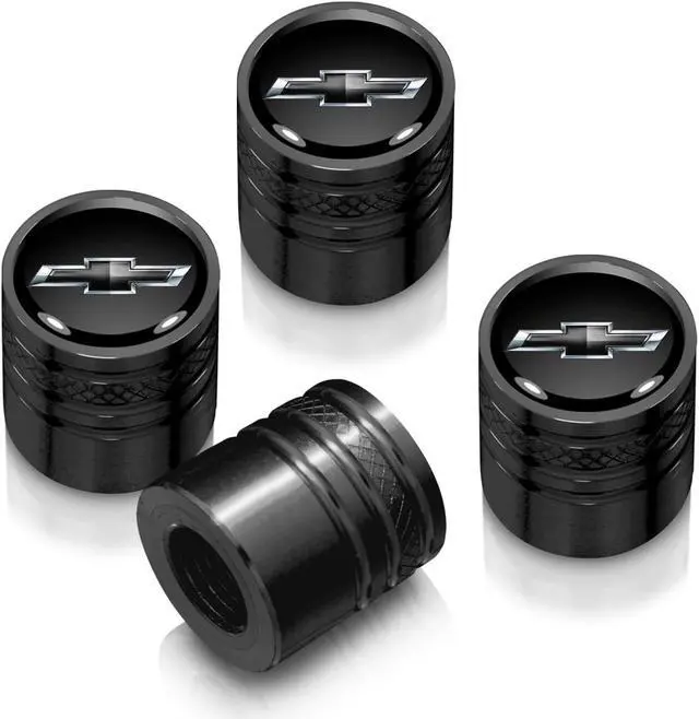 Chevrolet Black Logo in Black on Black Aluminum Cylinder-Style Tire Valve Stem Caps