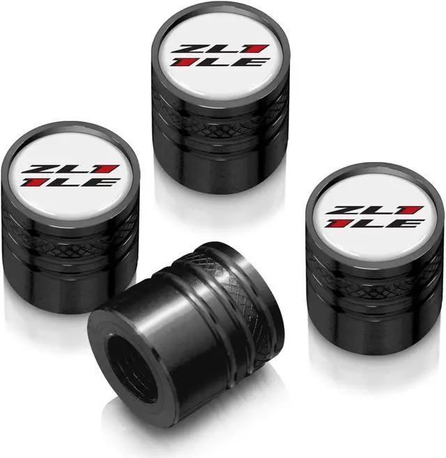 Chevrolet Camaro ZL1-1LE Logo in White on Black Aluminum Cylinder-Style Tire Valve Stem Caps