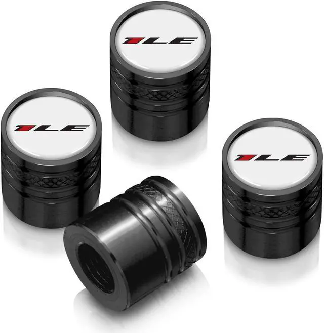 Chevrolet Camaro 1LE Logo in White on Black Aluminum Cylinder-Style Tire Valve Stem Caps