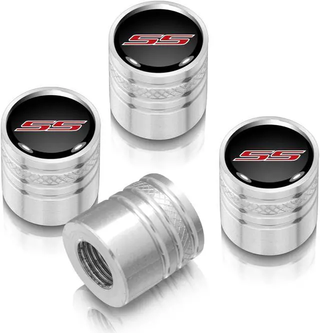 Chevrolet Camaro SS Logo in Black on Shining Silver Aluminum Cylinder-Style Tire Valve Stem Caps