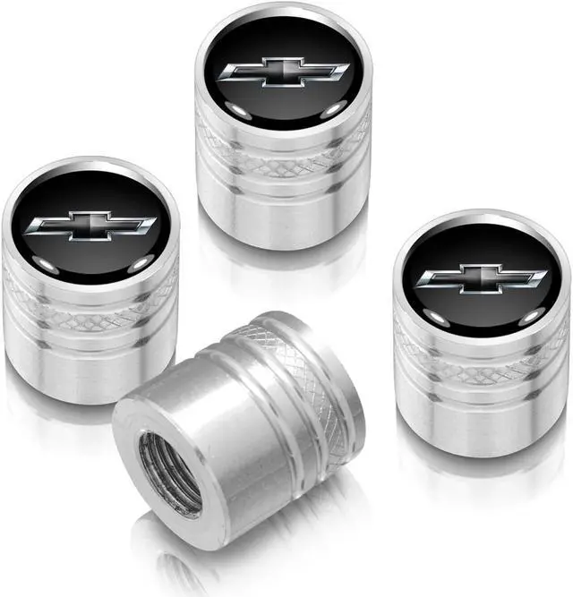 Chevrolet Black Logo in Black on Shining Silver Aluminum Cylinder-Style Tire Valve Stem Caps