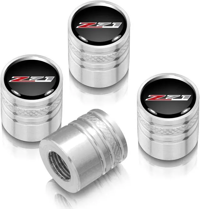 Chevrolet Z71 Logo in Black on Shining Silver Aluminum Cylinder-Style Tire Valve Stem Caps