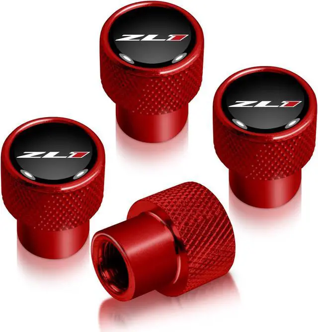 Chevrolet Camaro ZL1 Logo in Black on Red Aluminum Tire Valve Stem Caps