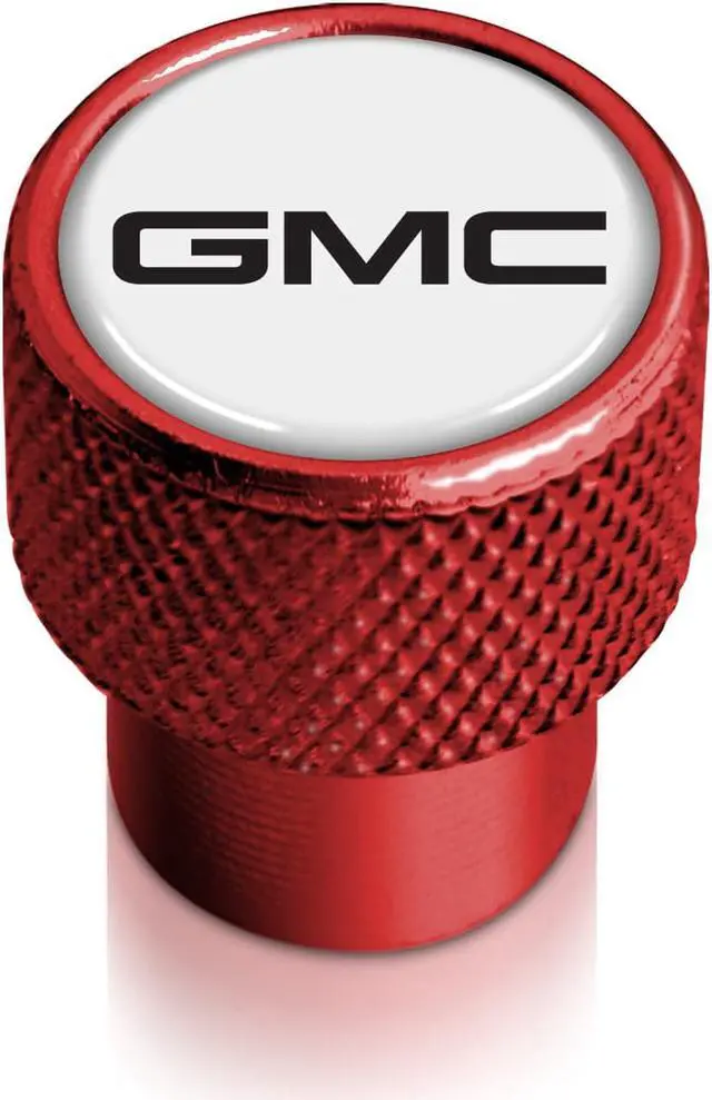 GMC Logo in White on Red Aluminum Tire Valve Stem Caps