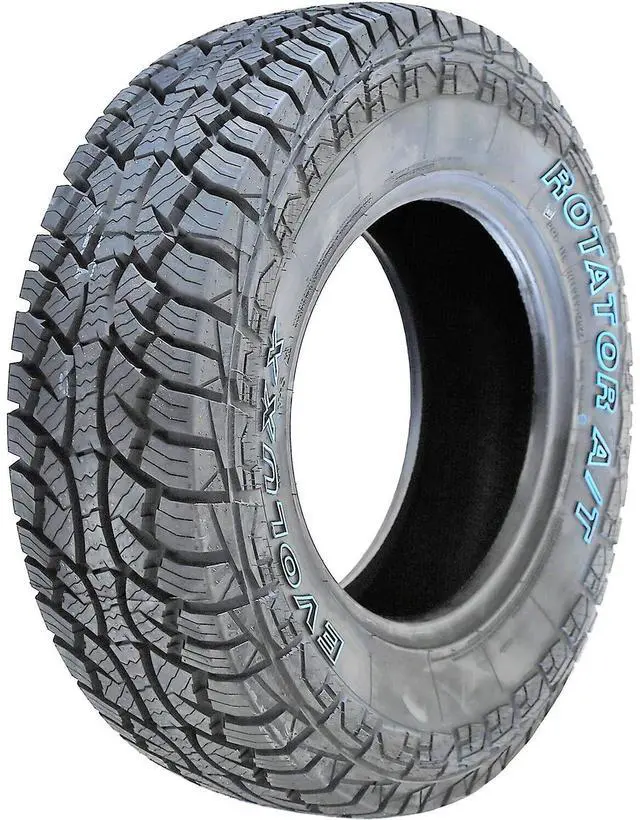 The Evoluxx Rotator A/T is an all terrain, all season tire manufactured for SUVs and light trucks. Evoluxx offers a 55,000 mile treadwear warranty with this model. The tire ensures great all weather traction with the all season compound and the detailed tread design.