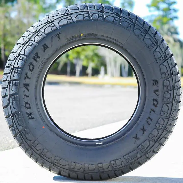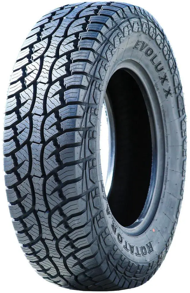 The Evoluxx Rotator A/T is an all terrain, all season tire manufactured for SUVs and light trucks. Evoluxx offers a 55,000 mile treadwear warranty with this model. The tire ensures great all weather traction with the all season compound and the detailed tread design.