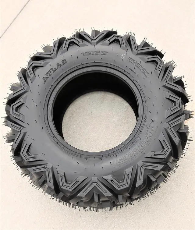 The Forerunner Atlas is an all terrain, all season tire manufactured for ATVs and UTVs. The ideal tread design, which extends to the sidewalls, enhances the tire's grip on all soft, loose and uneven terrain surfaces. These tread elements maintain a firm grip throughout the tire's performance.
