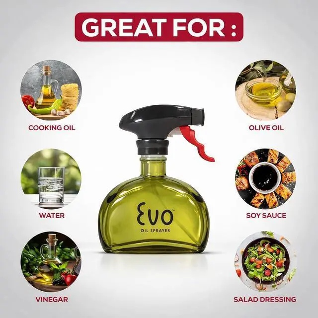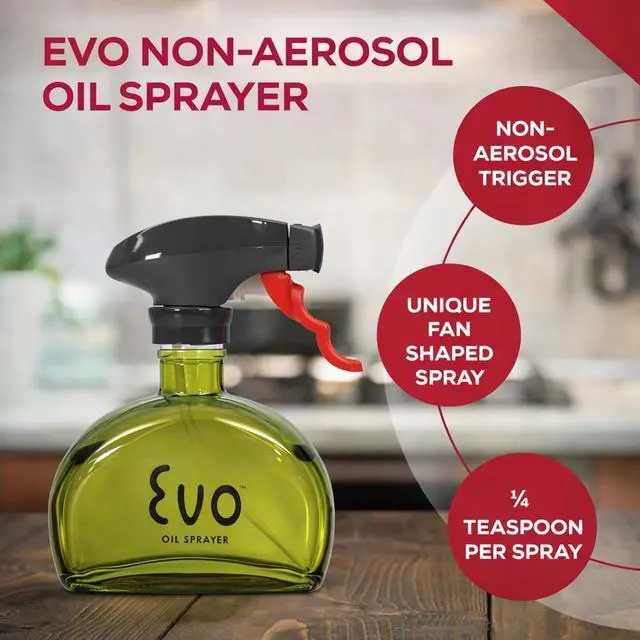 Evo is perfect for spraying oils in your pans and baking ware, and for adding flavor to your food