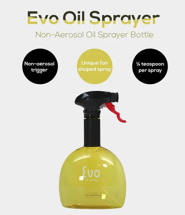 Evo is perfect for spraying oils in your pans and baking ware, and for adding flavor to your food
