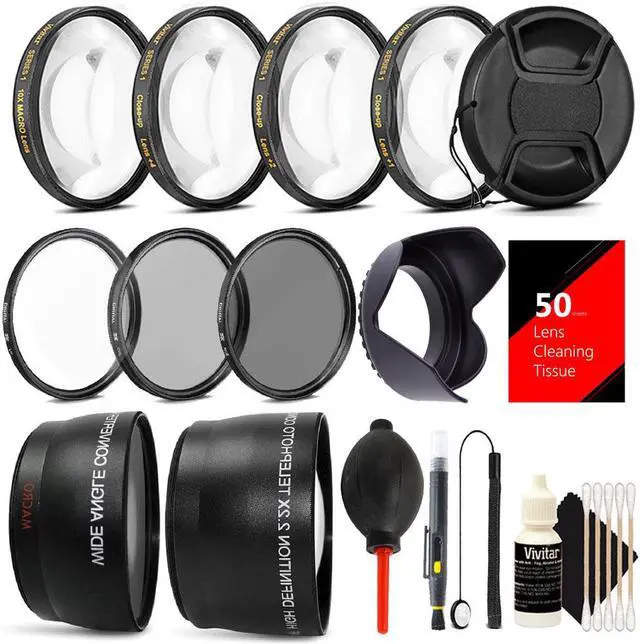 FDL Filter: Allows camera use under fluorescent lighting Gives natural light colors when under poor conditions 52mm Close Up Macro Kit Filters The digital macro filter kit includes four close-up diopters of +1, +2, +4 and +10 magnification with a 52mm thread for easy screw-on attachment, effectively transforming your lens into a crisp macro lens. 52mm Snap-On Lens Cap 50 Lens Tissue Lens Cap Holder 3pc Cleaning Kit