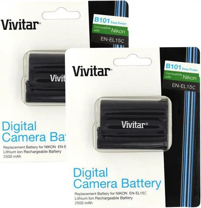 Vivitar EN-EL15c rechargeable lithium-ion battery. This battery has the EN-EL15 form factor and can be used as a higher capacity substitute for previous generation batteries. It is compatible with the MH-25 and MH-25a chargers, or, when used with Z cameras, it can be charged in-camera using the EH-7P Charging AC Adapter.