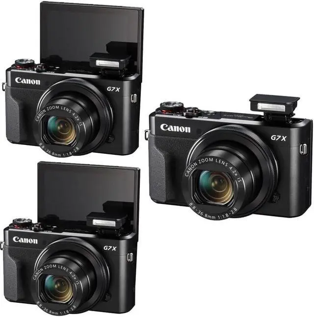 Blending notable imaging qualities with refined handling, the PowerShot G7 X Mark II Digital Camera from Canon is a compact point-and-shoot characterized by its large feature-set. Utilizing a 20.1MP 1 CMOS sensor and DIGIC 7 image processor, this camera offers an expanded sensitivity of ISO 25600 and achieves smooth image quality with reduced noise when working in low-light conditions. Additionally, it is also capable of recording stills at up to 8 fps as well as Full HD 1080p60 video. Complementing the sensor and processor combination is a versatile 4.2 x zoom lens, which provides a 24-100mm equivalent focal length range, covering wide-angle to short-telephoto perspectives.