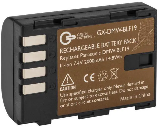 The Green Extreme DMW-BLF19 is the perfect recharge and go power source compatible with all cameras using the Panasonic DMW-BLF19. Designed to meet or exceed original manufacturers' specifications for compatibility and performance.Even our packaging is recycled material - green!