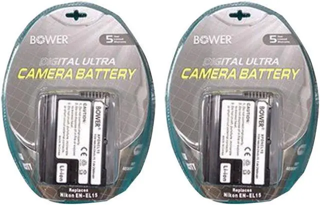 The 7.4V, 2500mAh Bower EN-EL15 Lithium-Ion Battery - 2X replaces the Nikon EN-EL15 battery. Small and lightweight, this rechargeable lithium-ion battery can be charged or discharged at any time without developing memory effects, meaning it will never lose its ability to hold a full charge.