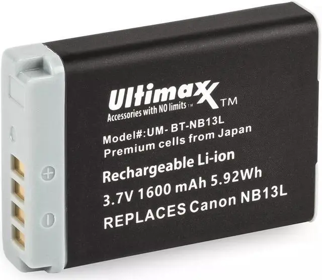 ULTIMAXX Replacement battery for Canon NB13L - 1600 mah x2
