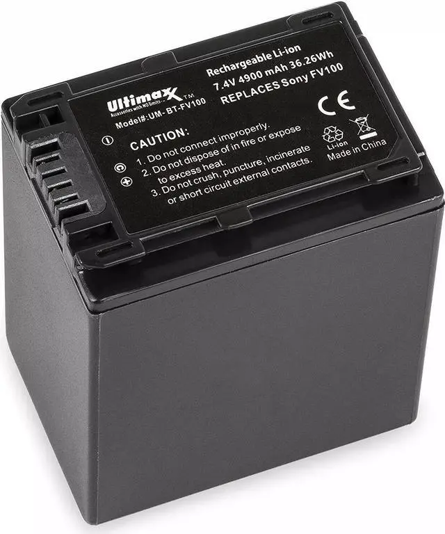 The Ultimaxx NP-FV100 Extended Life Battery is perfect for any camera that utilizes Sony NP-FV100 batteries. With an increased storage capacity of 4900mAh and 36.26W h, this battery allows for extensively longer camera use leaving more time to shoot and edit on the go. Containing a decoded chip, this product will function exactly as the stock battery does by displaying leftover time and does not require a special charger. The composition ensures a memory-free battery which permits charging whenever convenient instead of waiting until it is fully drained.